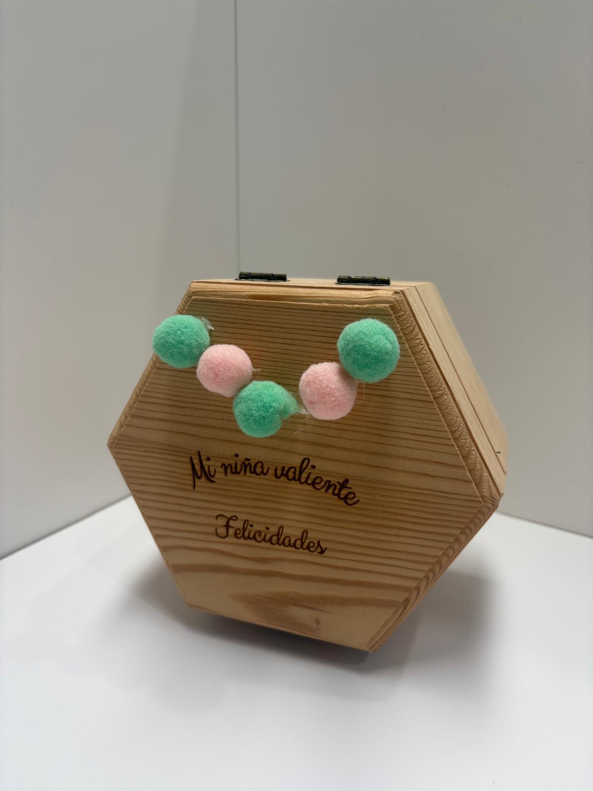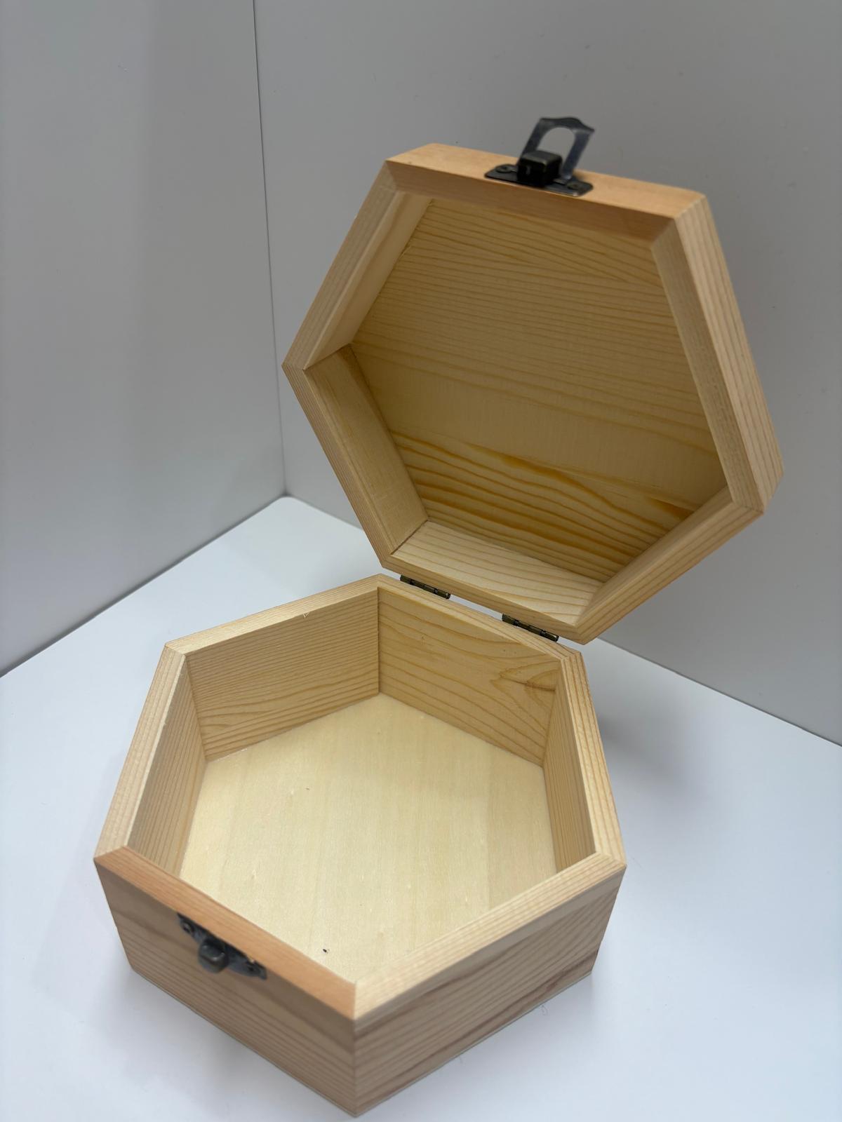 Caja de madera hexagonal para guardar cositas dentro.