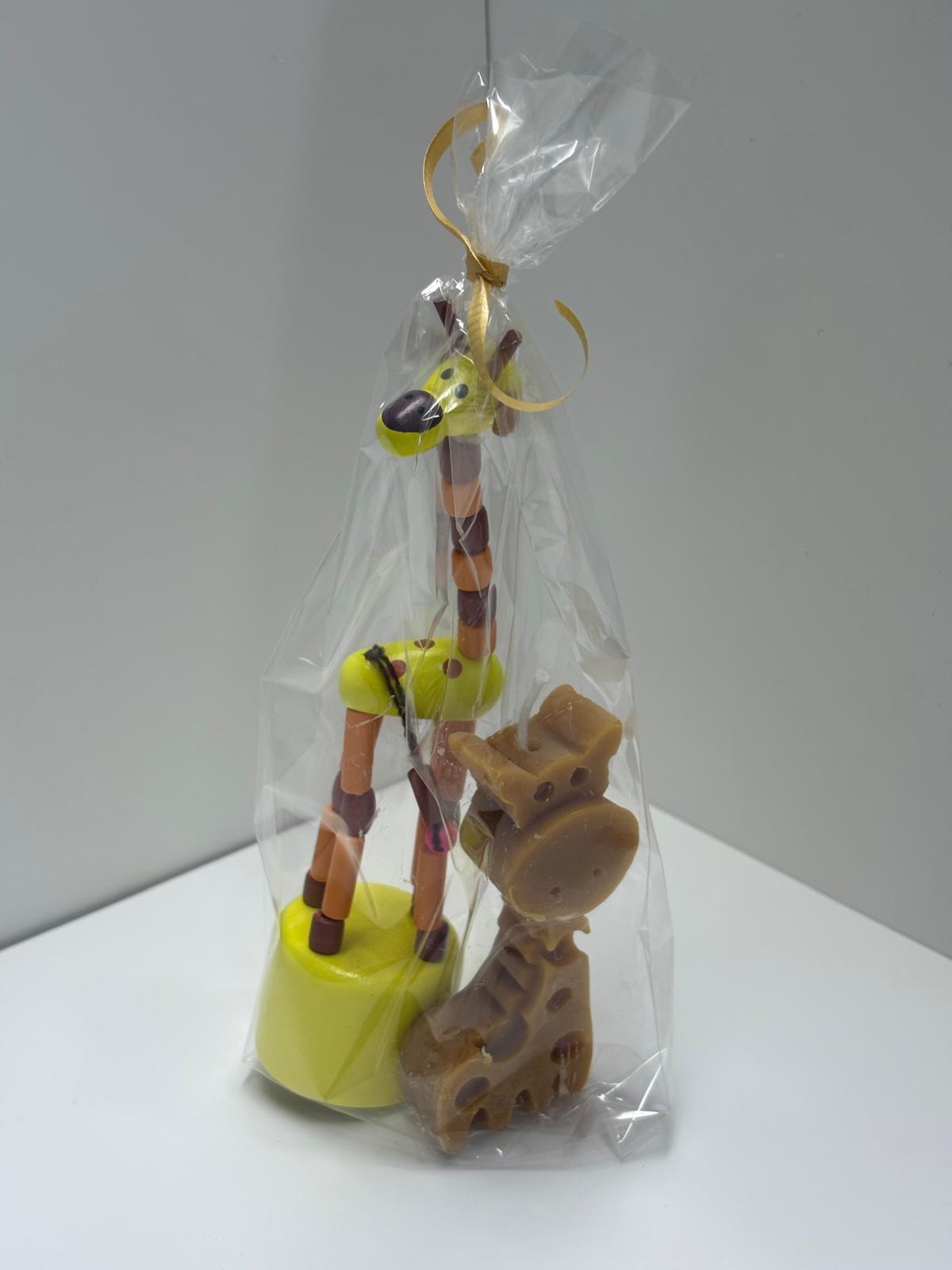 Pack juguete de jirafa y vela de miel.
